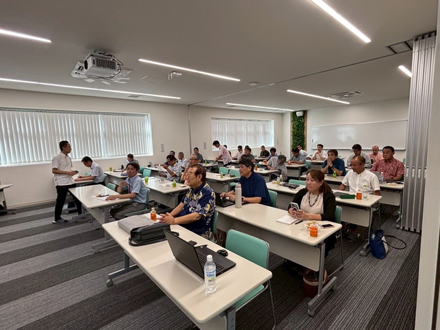今回は沖縄県経営品質研究会の会員企業であります総合包装株式会社へベンチマークで訪問しました。今回はたくさんのオブザーバー企業も参加いただき有難う御座いました。本社を見学後、新しく出来たイノベーションスペースにて勉強会をおこないました。SDGs、健康経営、BCP、DXでの業務改善、TPI活動等の紹介でペーパレス化や階段への黄色のすべり止めなどの紹介がされました。勉強会や見学中に、さすが包装の会社!包むがテーマで『沖縄をハートで包む、想いをハートで包む』を掲げており『包む』とは布や紙などで何かを覆い隠す、または包み込むという意味の他動詞ですが、相手への配慮や思いやりを表す際にも使われ、「贈る」という意味合いや、相手を大切にする心遣いを含むこともあるそうです。気持ちが伝わりました。また総合包装の社員の皆さんのおもてなし有難う御座いました。